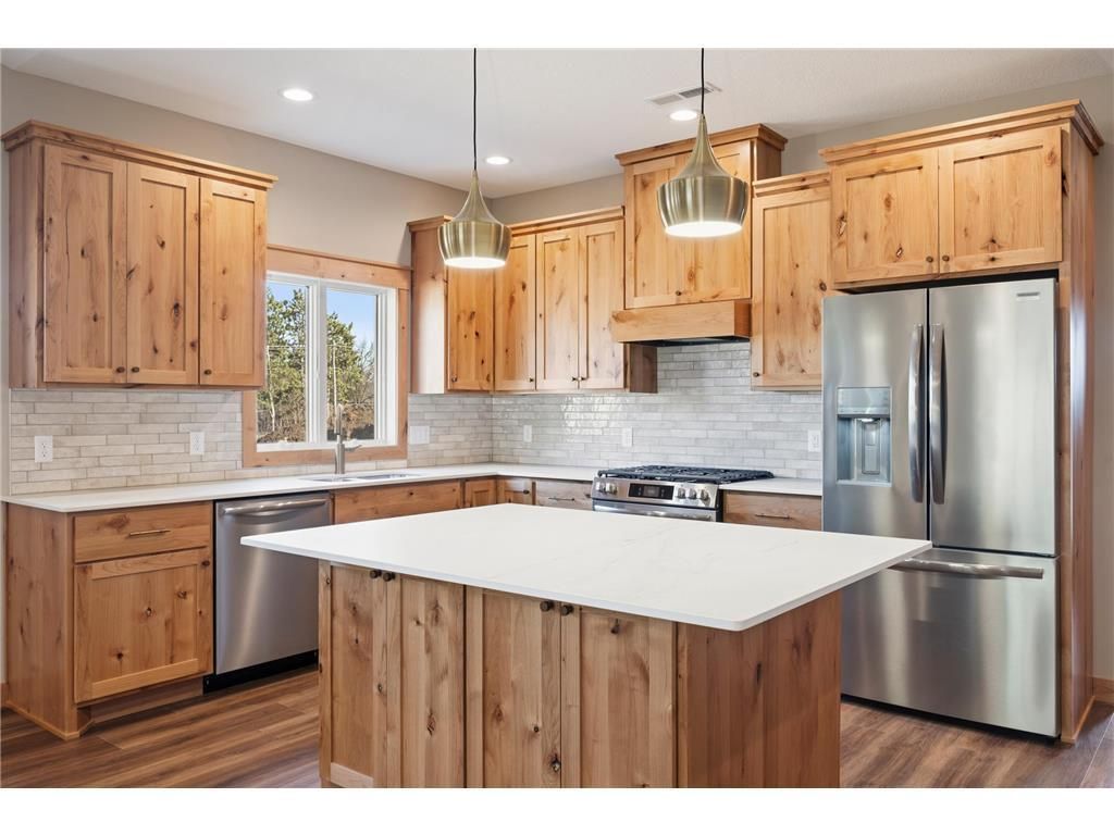 MOVE RIGHT IN! Completed new construction luxury twin home offering 3 bedrooms, 2 bathrooms, and 1,754 sq. ft. of single-level living. Designed for comfort and convenience, this home features a zero-entry layout, in-floor heat, 9? ceilings, gas fireplace, LP Smart Siding, Andersen 400 Series windows, and included washer and dryer. The kitchen is a standout with an oversized island, knotty alder cabinetry, Dekton countertops, stainless steel appliances, tile backsplash, and under-cabinet lighting. A functional mudroom off the garage includes a convenient pass-through to the primary closet?one of the home's most thoughtful design features. Enjoy a private setting with peaceful wooded views. Exterior highlights include a 12' x 5' insulated patio storage unit and additional finished storage space above the garage. With HOA-covered lawn care and snow removal, plus a location near hospitals, shopping, and the Twin Cities Metro, this home offers easy, low-maintenance luxury living.