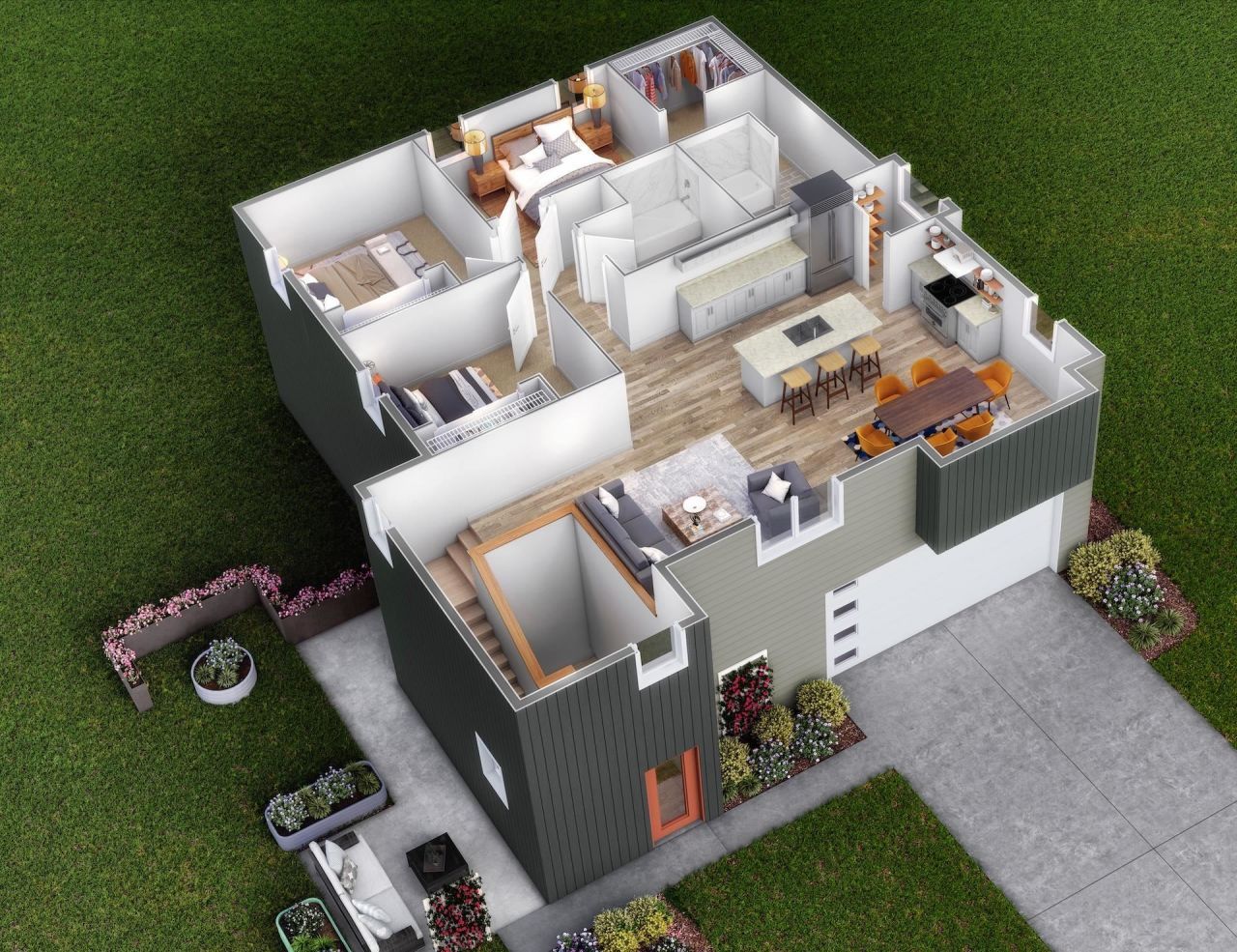 Under Construction. Designed for creative living, the DEVOTEE offers an open, light-filled layout with a two-story foyer, site-sourced hardwood accents, and flexible lower-level space. The modern kitchen features quartz counters, island, GE appliances, and pantry. Perfect design for gathering, creating, or unwinding. Energy-efficient appliances, Smart Thermostat, LED lighting, high-efficiency HVAC, and pre-wiring for future solar and EV charging. Point Gardens is the first ever Focus on Energy Certified Neighborhood, thoughtfully designed for sustainability and community connection. Enjoy 13 acres of parks and trails, future wildflower fields, and a garden for every home, including one year of Burpee seeds!