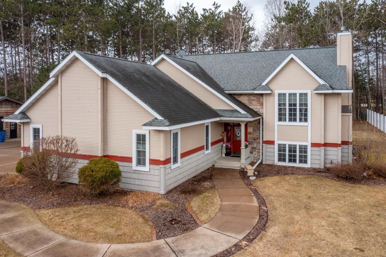 Spacious 3-bedroom, 2-bath home located in a quiet neighborhood in the Village of Kronenwetter, set on a beautiful double lot totaling 1.28 acres. This well-crafted showcase home was built by Luedtke Builders and offers exceptional space and quality throughout. The home features a heated 2-car attached garage, plus a heated and drywalled 2-car detached garage?perfect for woodworking, hobbies, or entertaining. The main level offers two bedrooms and a full bathroom, including a primary bedroom with a walk-in closet. The living room showcases vaulted ceilings and a cozy gas fireplace. The finished lower level includes a third bedroom, full bathroom, laundry room, utility/storage room, a bar area ideal for entertaining, and an oversized family room with a second gas fireplace. Enjoy the expansive yard and desirable location within the DC Everest School District. This property offers space, comfort, and versatility both inside and out.