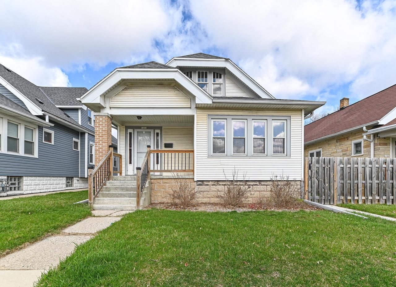 West Allis bungalow has decades of proud family ownership with potential for next level improvements with a lot of potential for sweat equity. Main level has living room with newer carpet and electric fireplace, dining room with built-in, kitchen with newer appliances included, 2025 remodeled bathroom with bath fitters tub & surround and new vanity. 2 bedrooms on main with refinished hardwood floors. Tons of potential in clean open 2nd floor attic space with bonus 3rd bedroom. 2025 Lenox furnace, 2021 central air, 2023 water heater, circuit panel, vinyl windows and siding, and dimensional roof on house and 2 car garage. Concrete patio and fenced yard. Amazing house with amazing potential, call today!