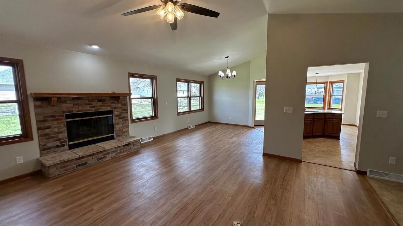 Remodeled 3 bedroom, 2 bath ranch home set on an oversized lot. The property has been cosmetically and mechanically updated significantly in the past 3 months! New appliances, quartz countertops, and a dining area make the kitchen pop. The living room and dining room offer a vaulted ceiling and natural burning fireplace The primary bedroom offers a walk-in closet and an en-suite bath with gorgeous tile floors, walk-in shower, double vanity and full size closet. The main floor laundry is a great convenience. A blank canvas is offered in the lower level for future living space opportunities. The property has a fresh coat of paint, new carpeting & tile, new garage door and the list goes on. Please see full list of updates on site. Some photos have been virtually staged.
