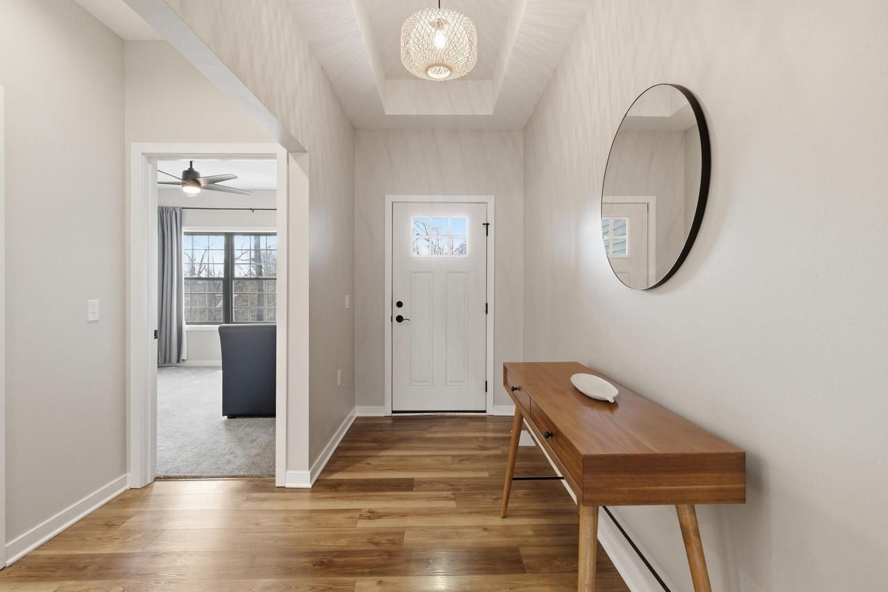 Enjoy the personal details the Sellers included when building this home just 3 years ago. The vaulted ceiling accentuates the main living area beautifully. The split bedroom plan easily facilitates a little extra privacy in the Primary Suite at the end of a long day. An eat-in KT w/island, quartz tops, soft close cabinets & LVP flooring overlooks the relaxing GR with a beautiful gas fireplace. Enjoy walk in closets in all of the bedrooms. The Primary Bath features a double vanity & tiled shower stall. The partially exposed lower level offers a world of opportunity with an already finished area currently being used as a craft room. It is plumbed for a future bathroom and has plenty of more space just waiting for your finishing ideas. All situated on a wooded lot on a quiet cul de sac.