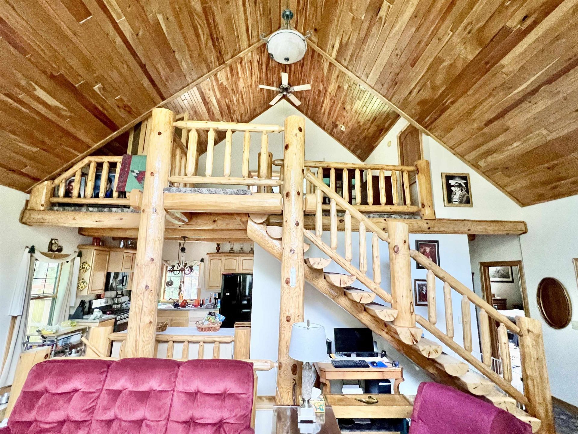 This 2 bedroom 21/2 bath Redwood sided house with stone accent enjoys beautiful landscaping, perennial flowering gardens, crab apple trees, flowing bushes, backyard patio, & fenced in back yard. The great room features a gas fireplace, cherry wood cathedral ceilings 26 ft high, ceiling fans, large windows with view of Lake Nokomis, & log staircase leading to the loft bedroom. The master bedroom suite is spacious with a gas fireplace, walk in closet, huge bathroom with double sinks, & shower. The kitchen has maple cabinets, pantry, & laundry room / full bathroom close by. The lower level includes a half bath, & den/guest room. There is an attached garage insulated and dry-walled. The 30x50 steel shed will give you plenty of space for all your vehicles and toys.